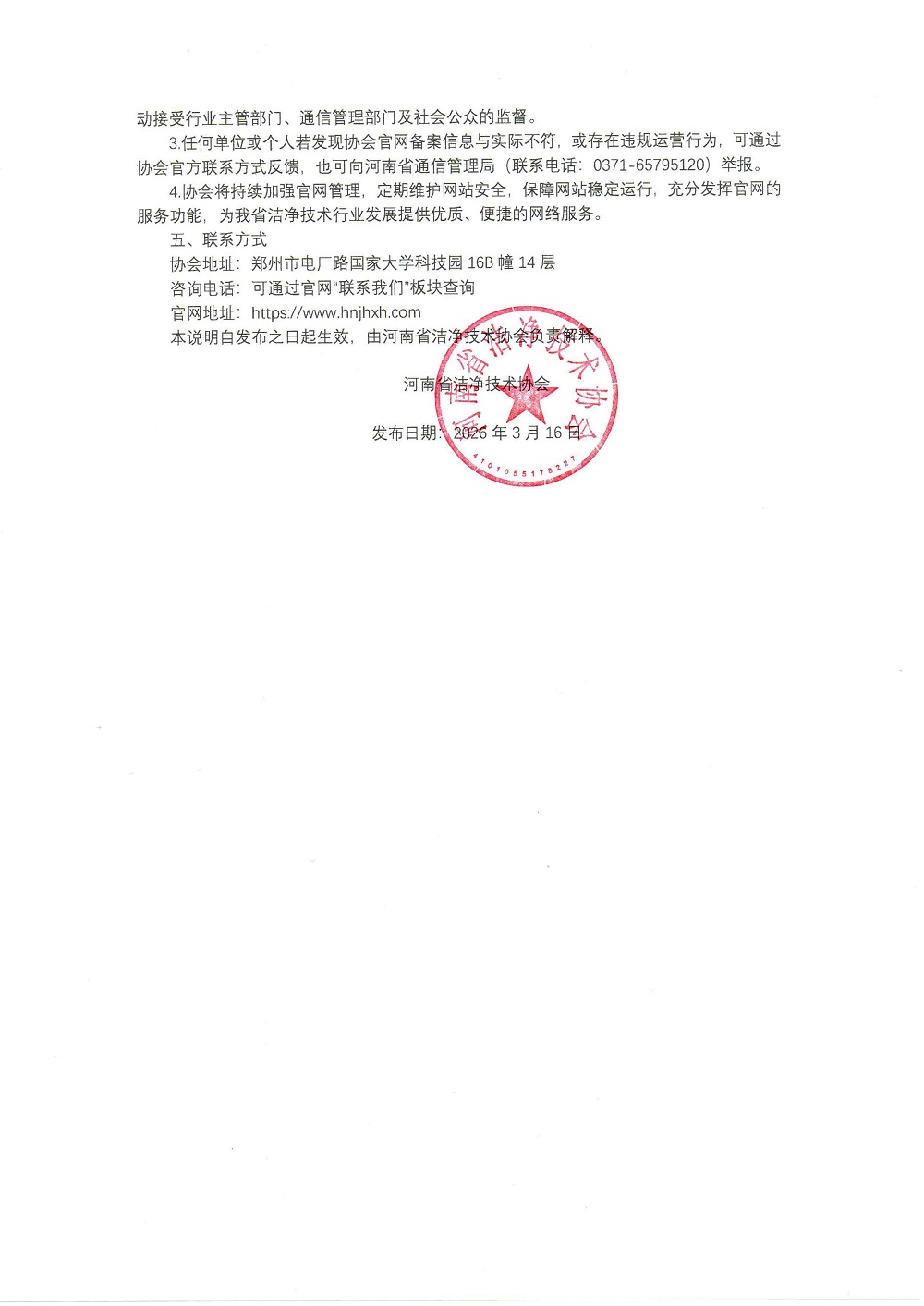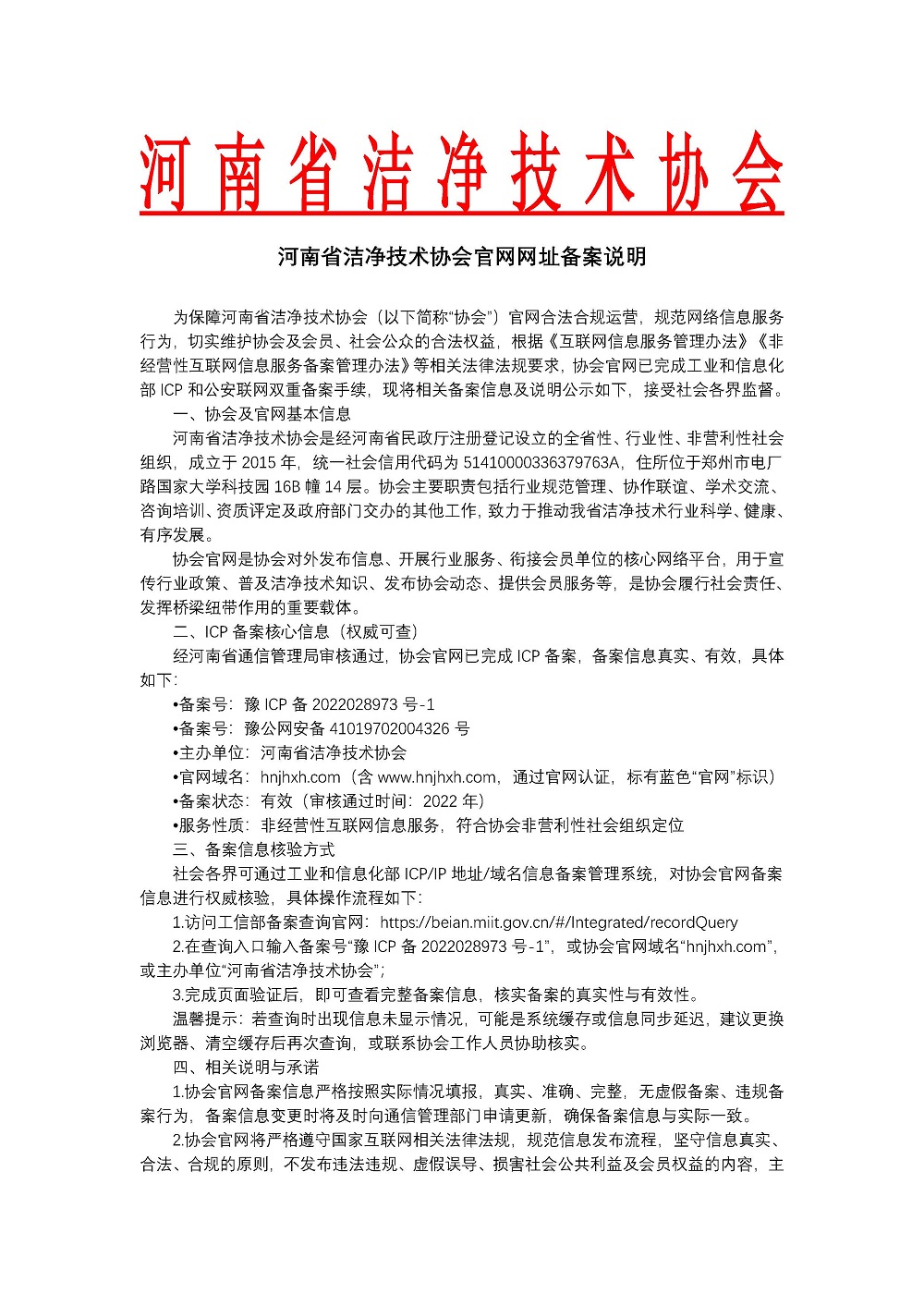 关于河南省洁净技术协会官网网址备案说明